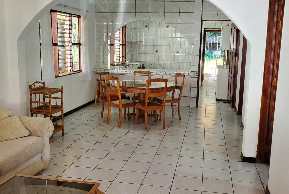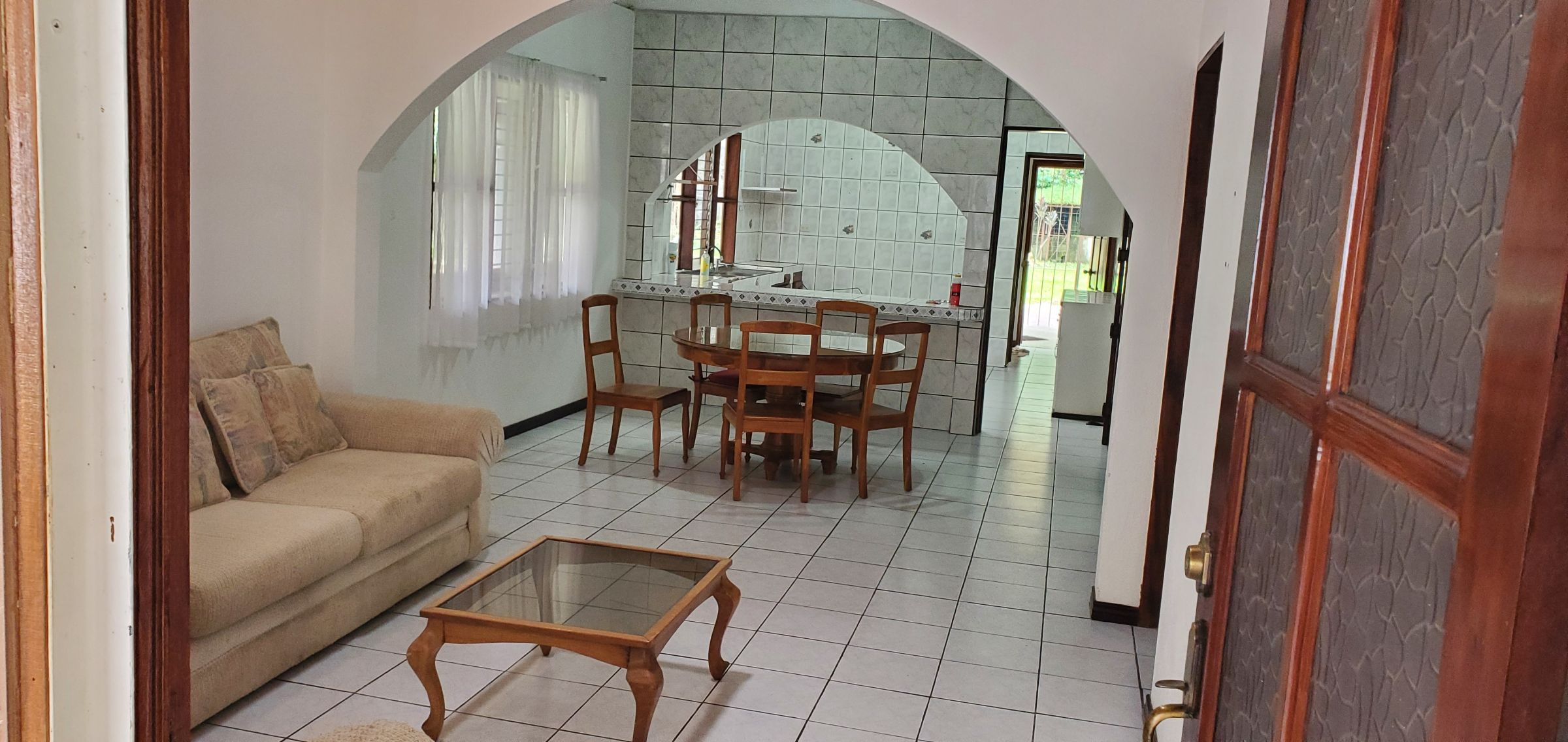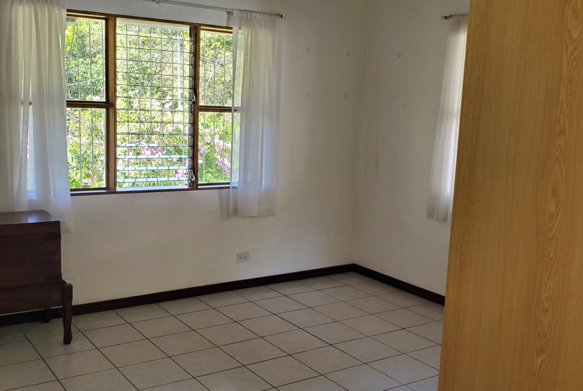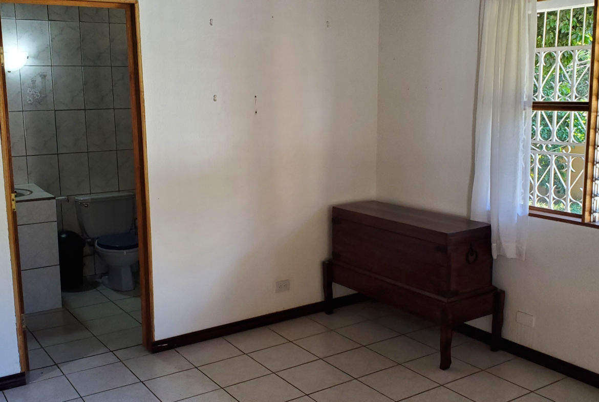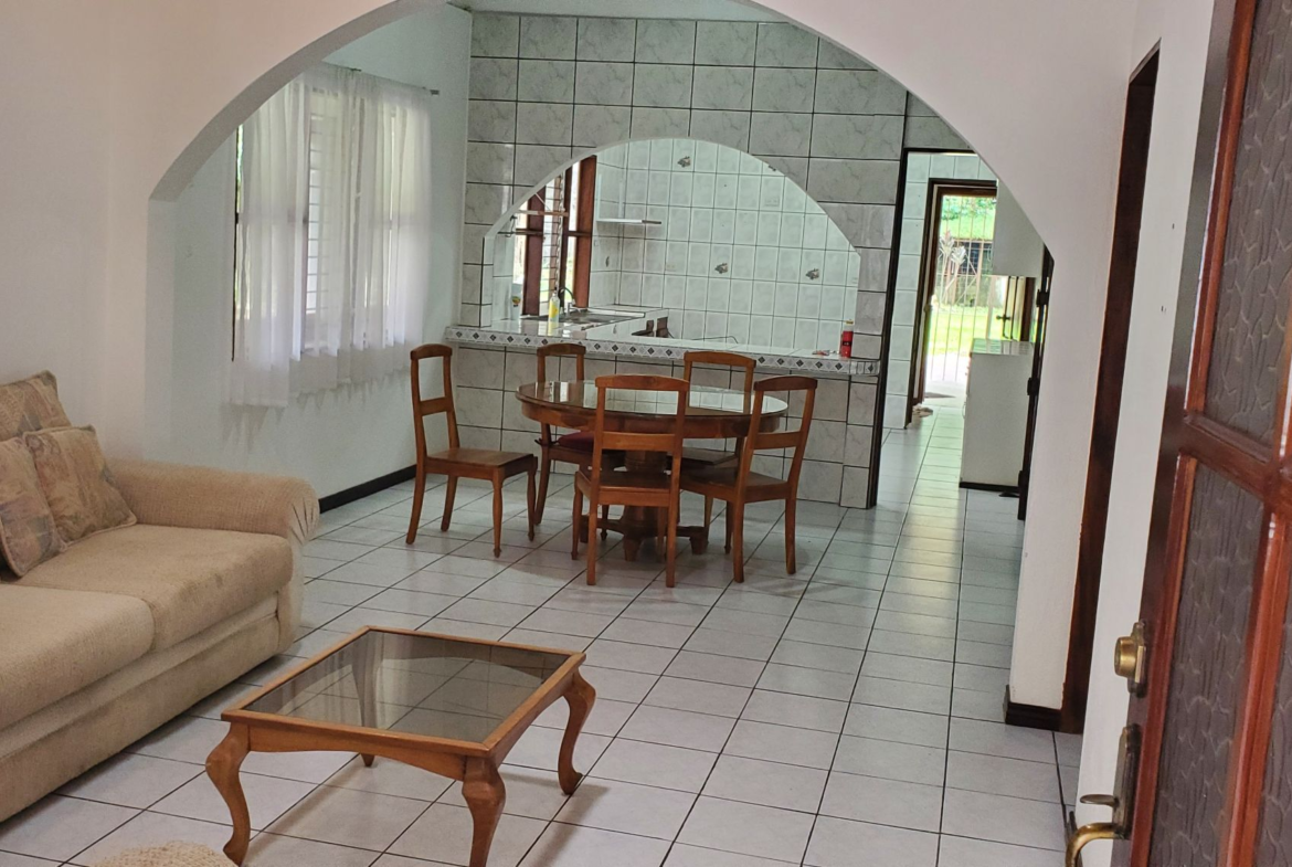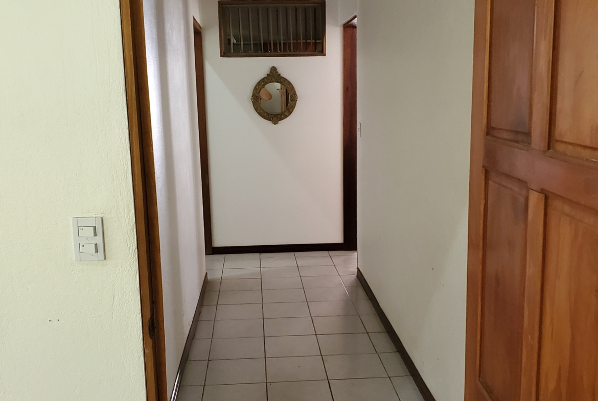 Santa Barbara de Heredia 3 BR house with wrap around porch and gardens for sale. Everything feels open and spacious. It begins with an open design of living and dining area looking into the kitchen from the breakfast bar. High ceilings and skylights add light and space.