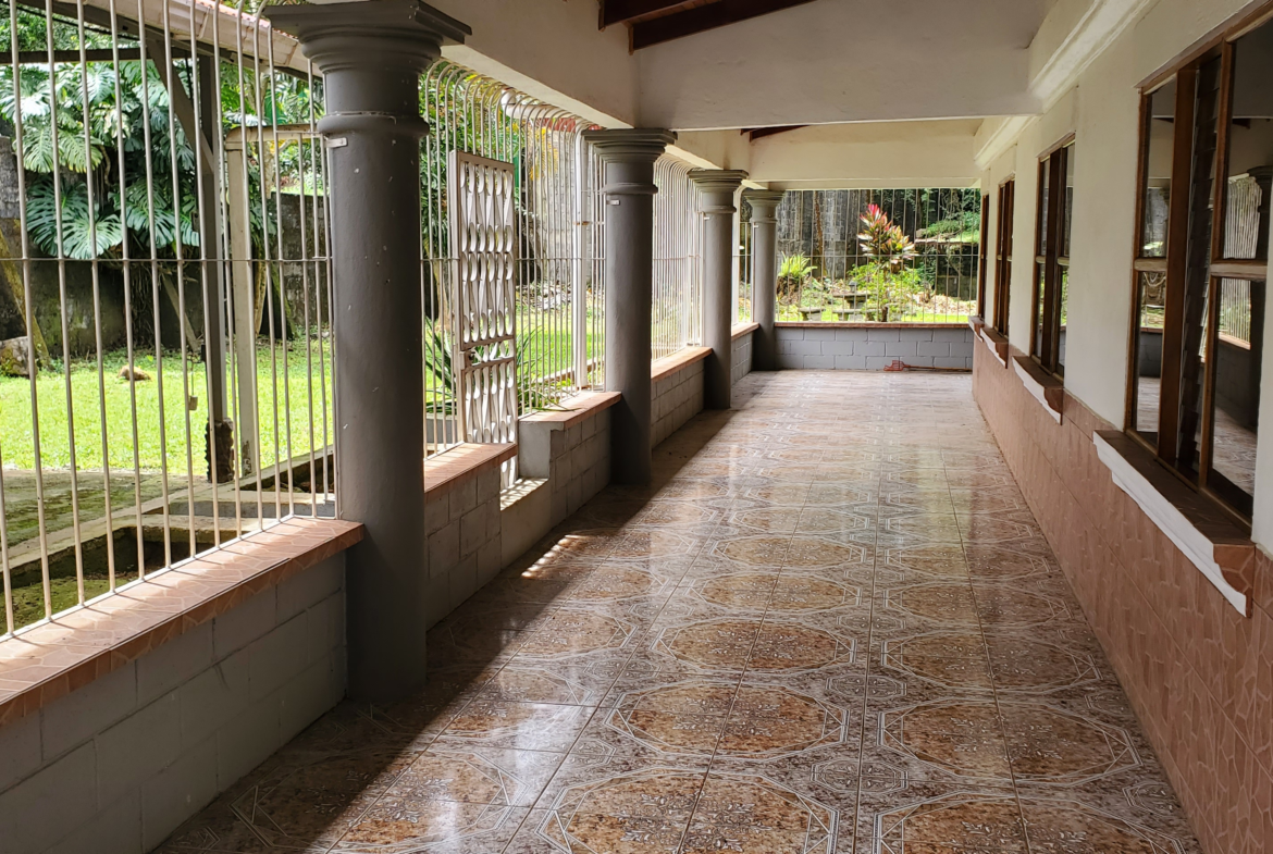 Amplios pasillos de baldosas rodean toda la casa. Estos están bajo el techo y cerrados para mayor privacidad y seguridad. Amplios espacios con árboles frutales maduros rodean la casa. El sonido de un río cerca se suma a la paz y tranquilidad de esta casa. ¡Un taller o almacén está en la parte trasera para tener aún más espacio para jugar!