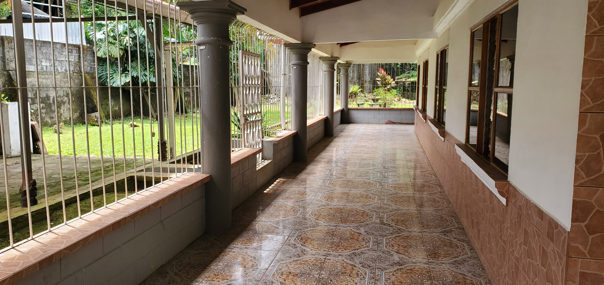 Wide tiled corridors run around the entire house. These are under the roof and closed in for privacy and security.
