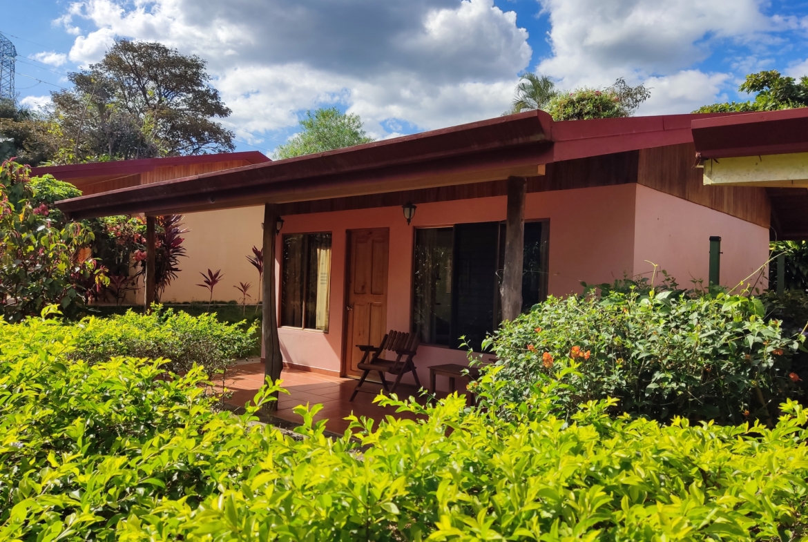 This single story 3 BR Atenas home + 3 bungalows and swimming pool has been operated in the past as a B&B. The owners changed their plans and moved out of the country. Located only 5 minutes drive from Atenas, this property sits inside a gated community.
