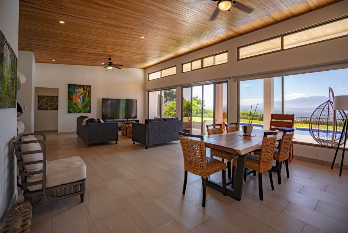 Large sliding doors and expansive windows bring in abundant natural light while allowing you to enjoy the refreshing mountain breezes that make Atenas known for its exceptional year-round climate. One of the home’s most captivating features of this property is the sweeping panoramic views of the Central Valley. In the early morning, the horizon lights up with soft golden sunrises, and in the evenings, you can enjoy the distant sunset colors, magical moments that impress.