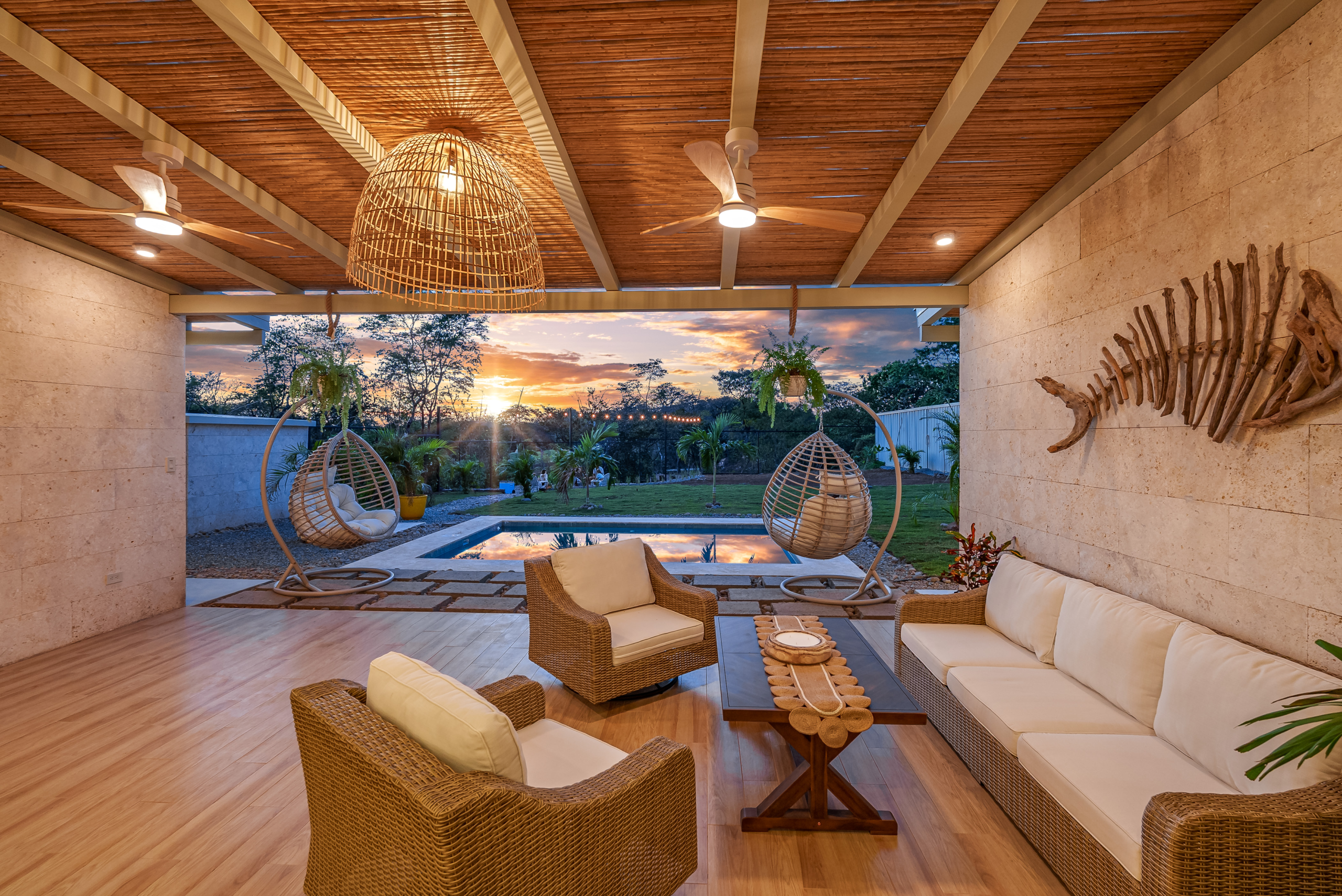 Tamarindo 3 BR Home with pool half mile from beach, a beautiful 3-bedroom home nearing completion in the sought-after beach town of Tamarindo. This brand new home is now furnished and offers a perfect blend of modern comfort, tropical seclusion, and convenience.