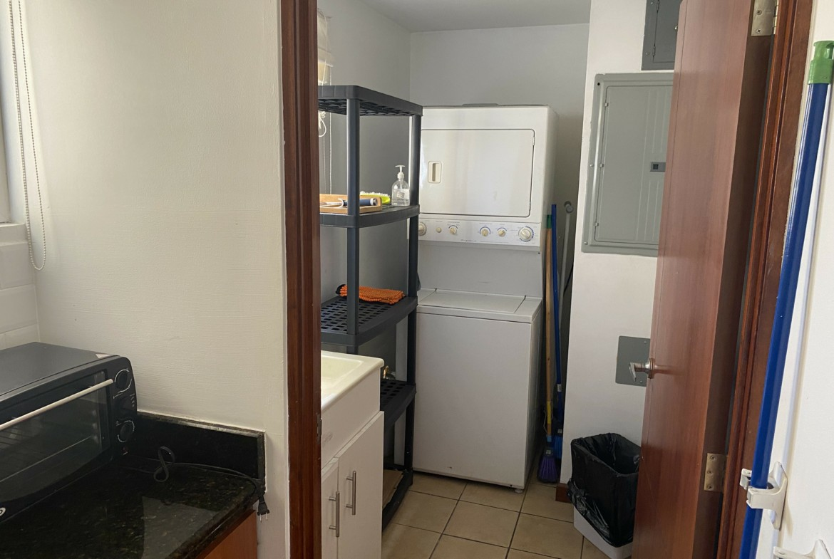 This condo offers 3 bedrooms, which is unusual in Condado de Baviera, where most units are 2-bedroom. The living room has a small balcony, large enough to sit outside and enjoy the beautiful views. This condo is offered turnkey, completely furnished and equipped.