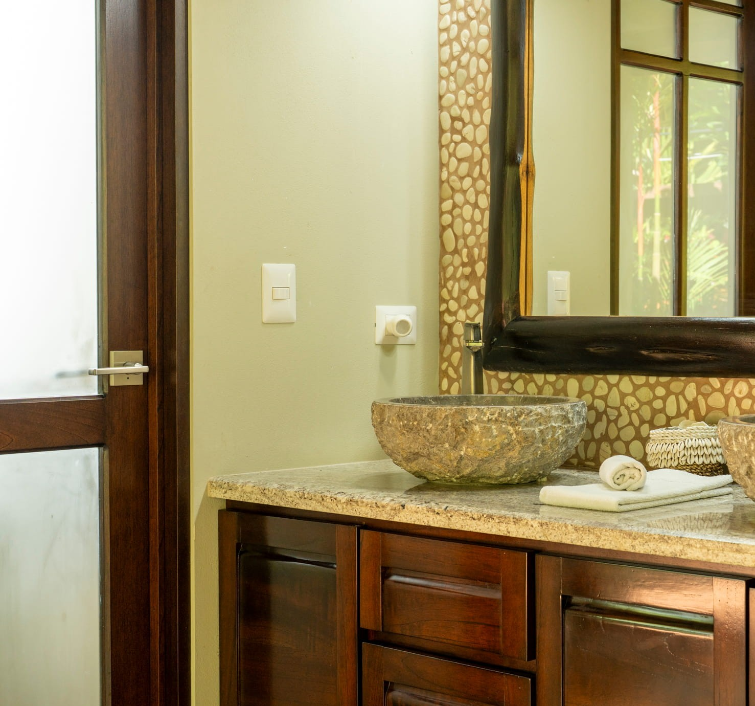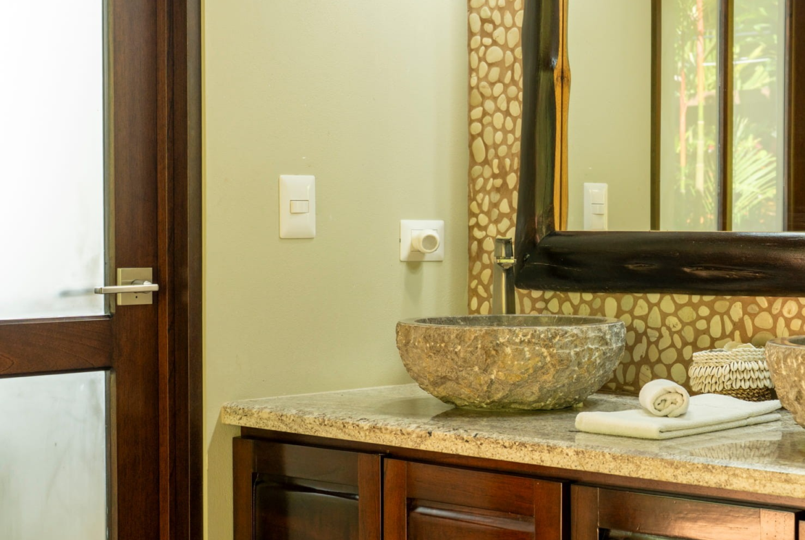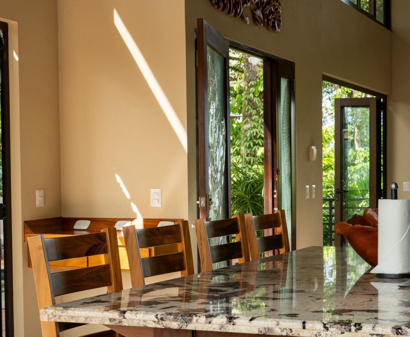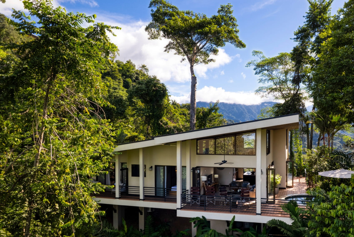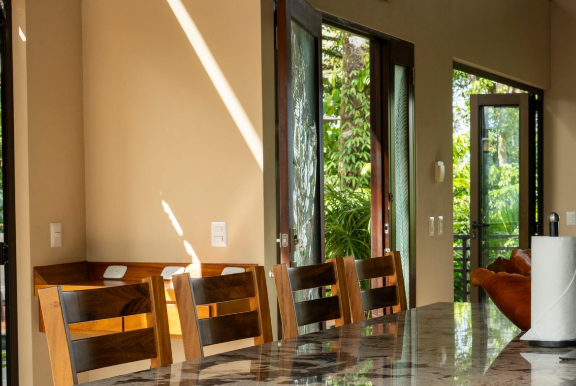 From the moment guests arrive, the experience feels like a vacation already in motion. Lush, mature landscaping frames the home, creating a sense of seclusion while maintaining dramatic sightlines to the ocean and surrounding rainforest. The setting is quiet, elevated, and immersive, yet only minutes from Uvita’s beaches, services, and dining.