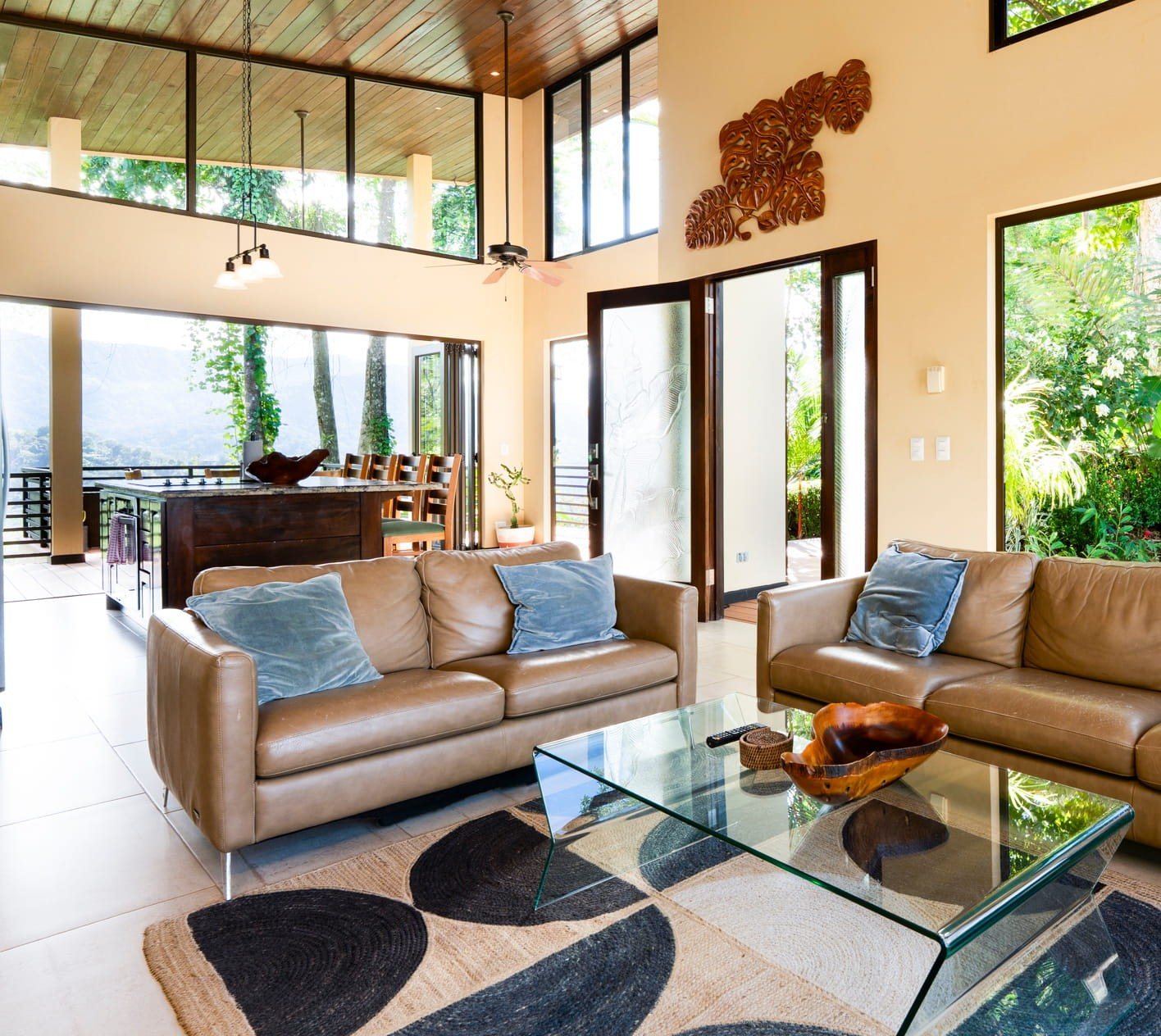 Designed for seamless indoor-outdoor living, the home opens effortlessly to expansive terraces and a private pool overlooking the jungle. Floor-to-ceiling glass brings the outside in, maximizing natural light and views from the main living areas and bedrooms. The layout is intuitive and guest-friendly, ideal for short-term rentals while remaining comfortable for extended owner stays.