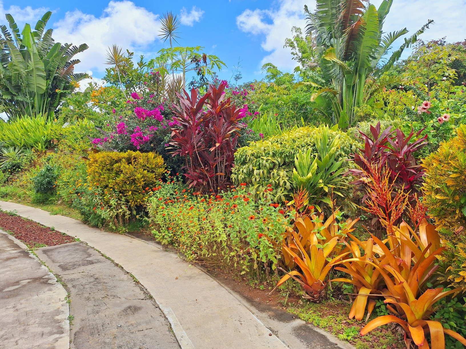The outside is as stunning as the inside. The owners created the most beautiful gardens with a wide variety of tropical plants in vibrant colors, mature native trees, and several fruit trees.