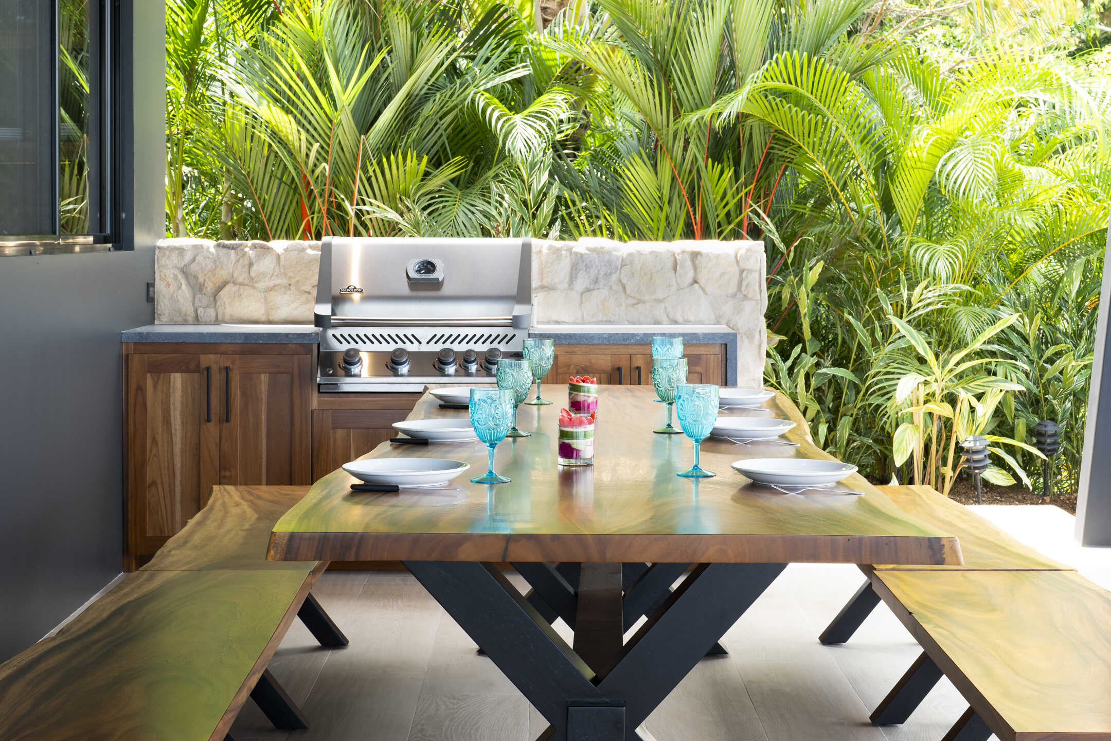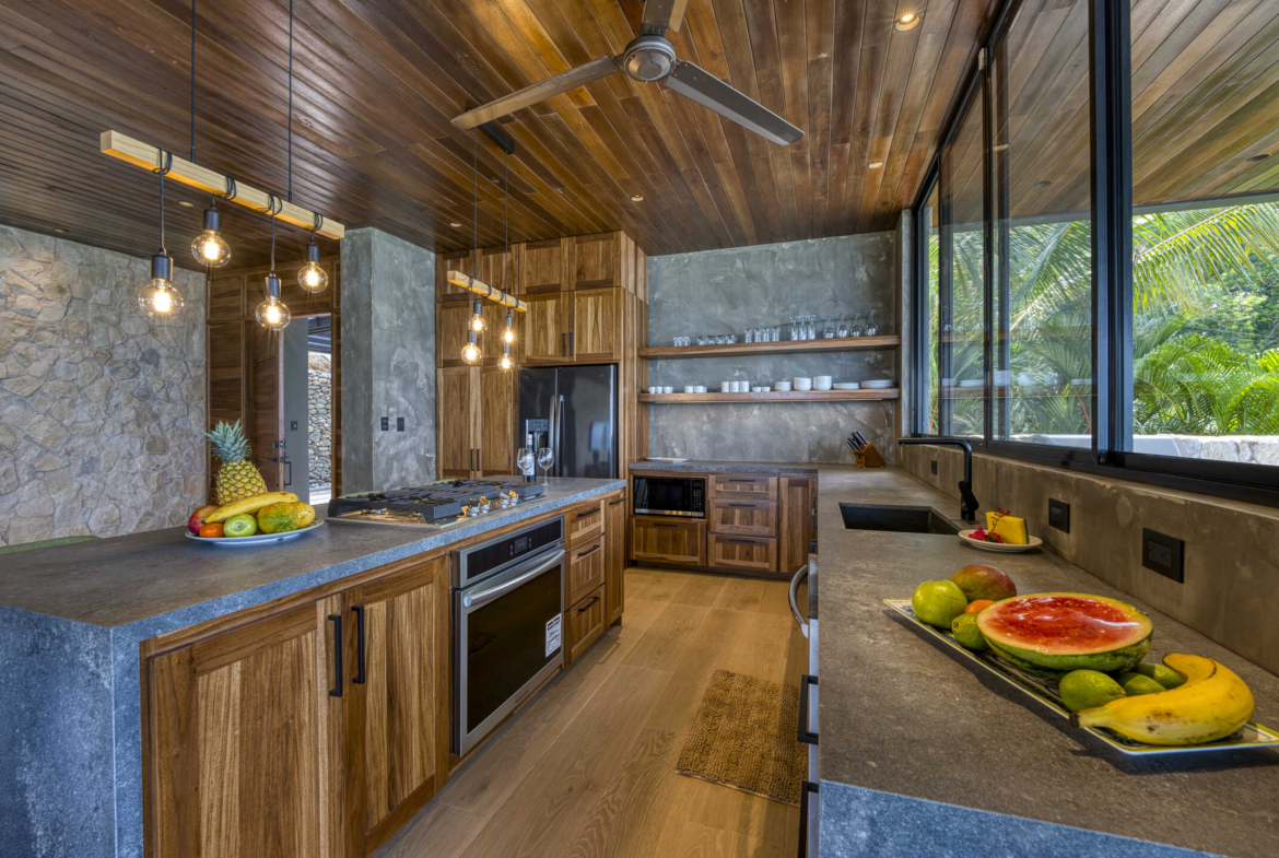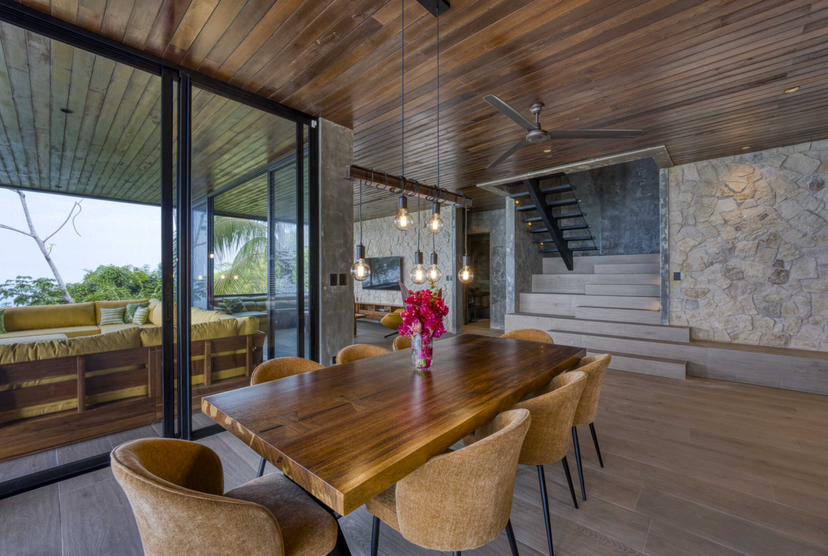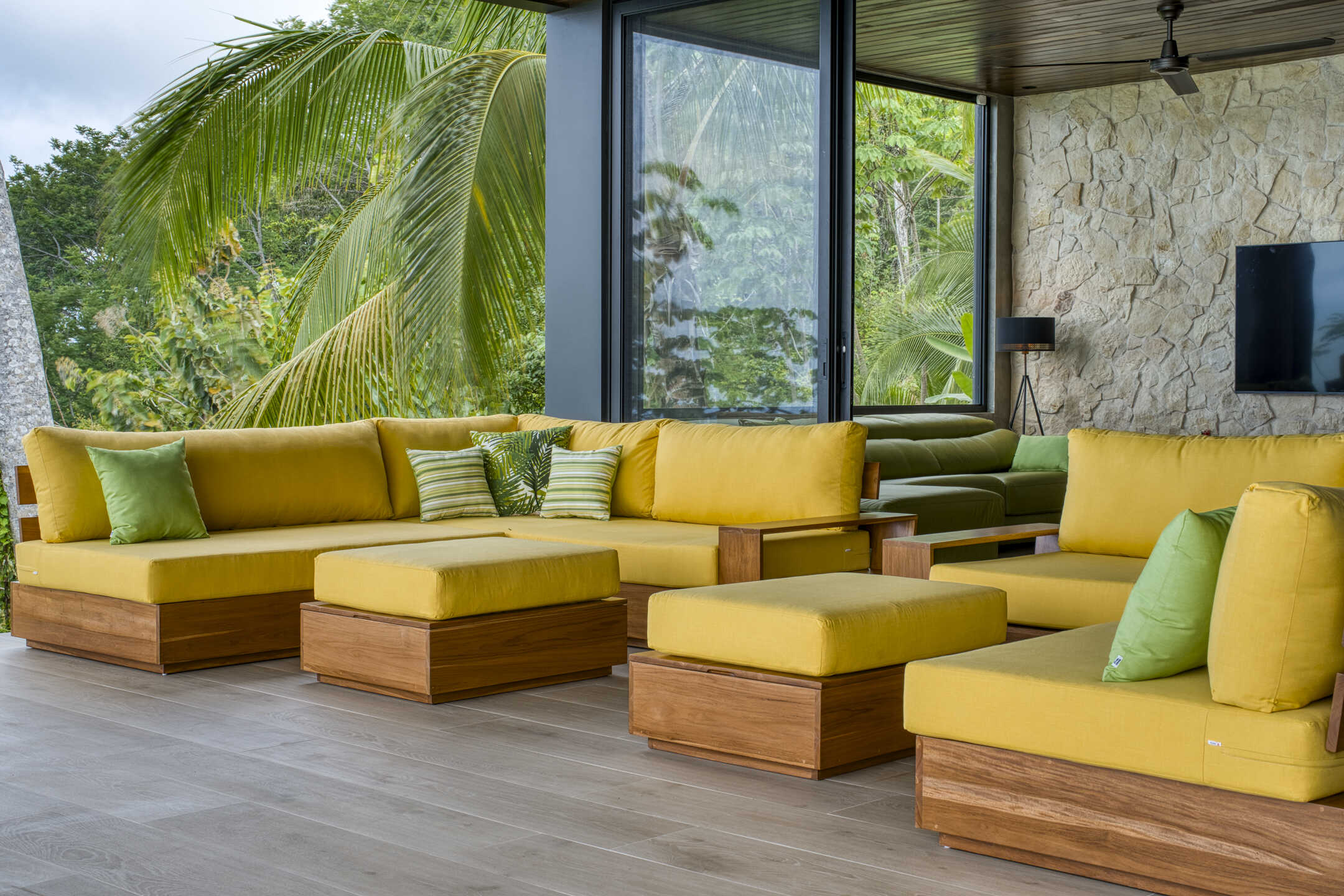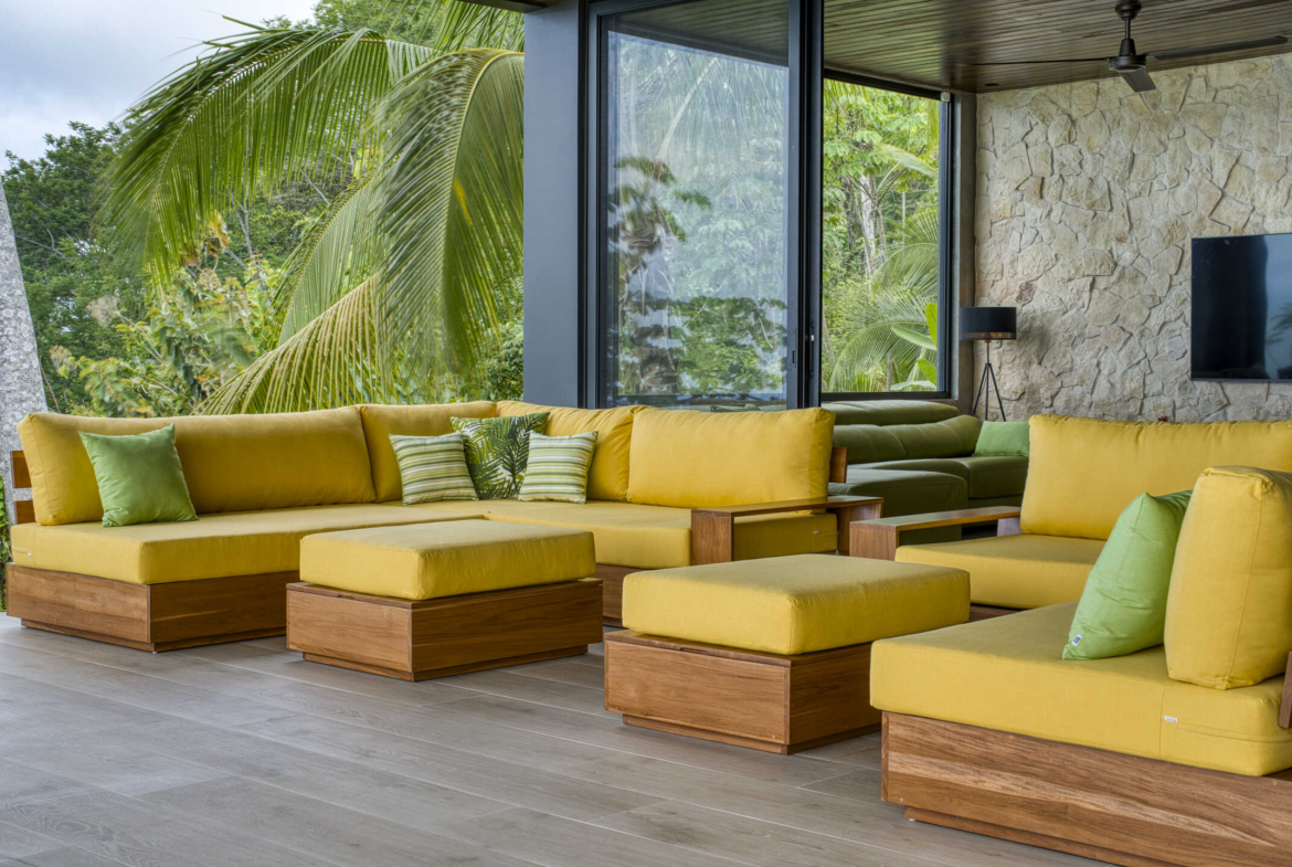 The living area of Hermosa Retreat is a testament to tropical elegance. It opens onto a sprawling outdoor terrace adorned with comfortable sofas and a hammock, creating an idyllic setting for relaxation amid nature’s tranquil beauty. This terrace serves as a peaceful sanctuary, perfect for yoga enthusiasts and those seeking a quiet place for meditation.