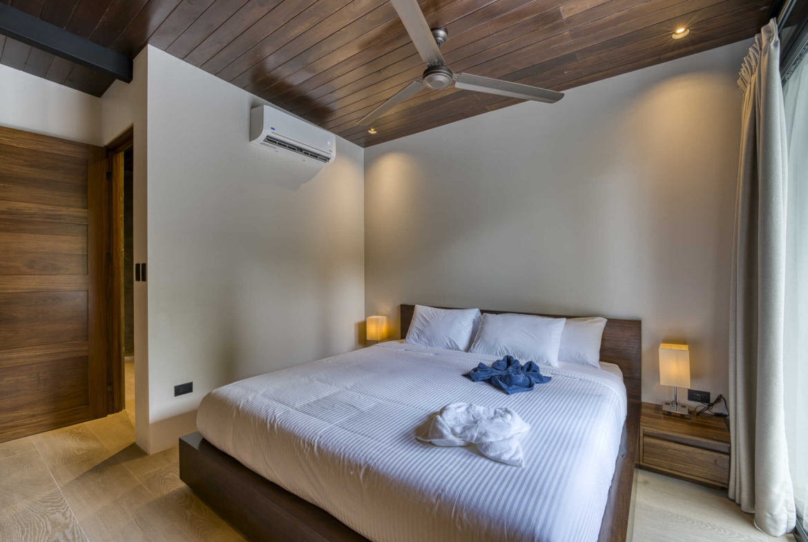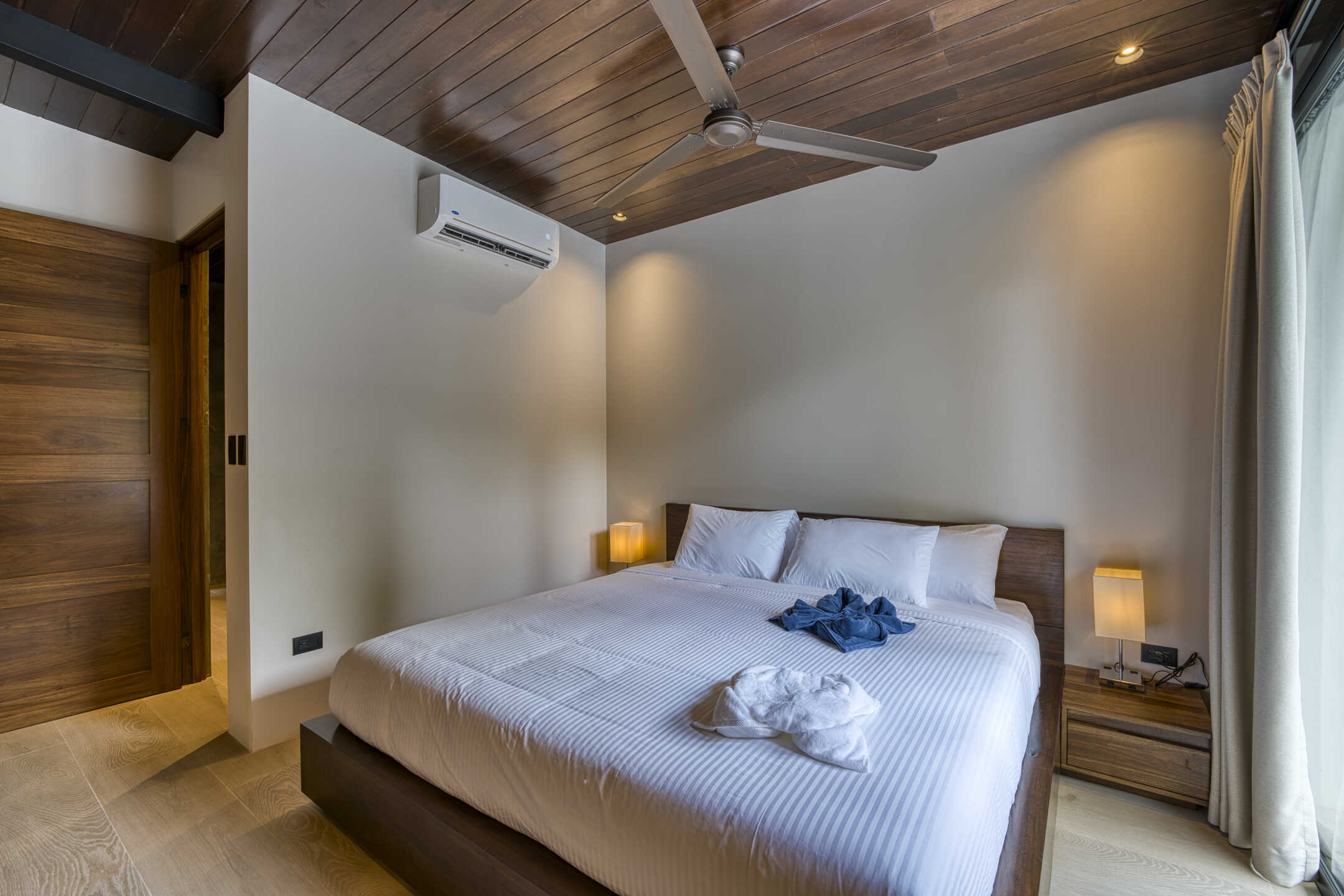 For leisure and refreshment, the villa offers a stunning infinity pool, ideal for cooling off on warm tropical afternoons. The residence is not only about comfort but also about convenience and connectivity, featuring state-of-the-art amenities such as air conditioning throughout and high-speed fiber internet with speeds up to 100 Mbps.